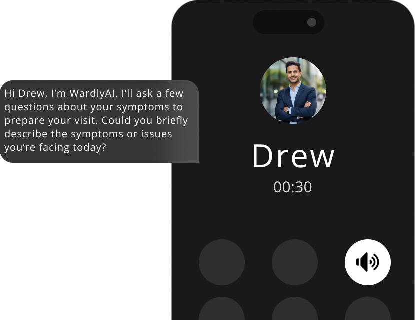 AI-powered patient calls capture symptoms, history, and concerns in natural conversation.